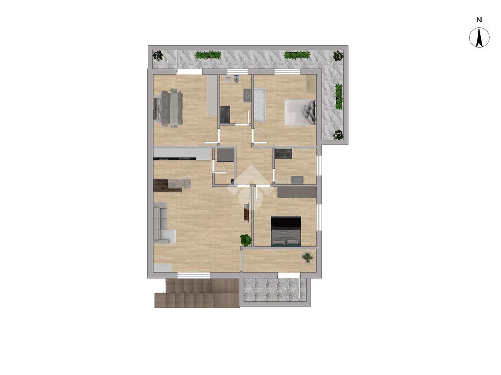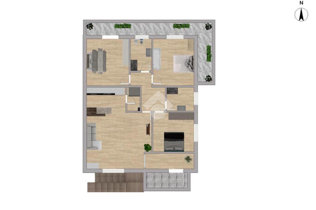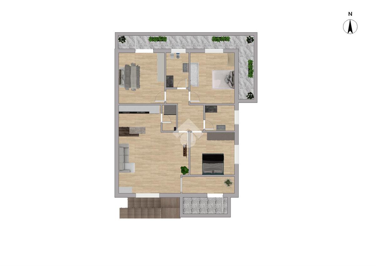 L’accesso avviene dal cortile tramite una scala esterna che conduce agli ingressi delle abitazioni. Gli interni offrono ambienti ampi, luminosi e funzionali: la zona giorno si distingue per spazi ben distribuiti, con angoli cottura organizzati in modo pratico e una comoda dispensa, ideale per ottimizzare l’organizzazione domestica.